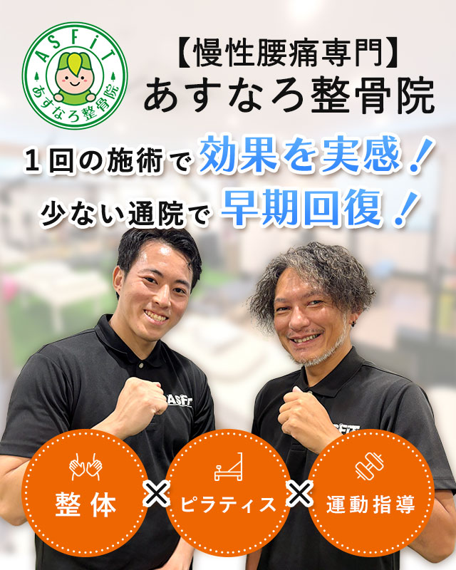 あすなろ整骨院は「少ない通院回数で、早期回復!」「痛みを繰り返さない身体作り」